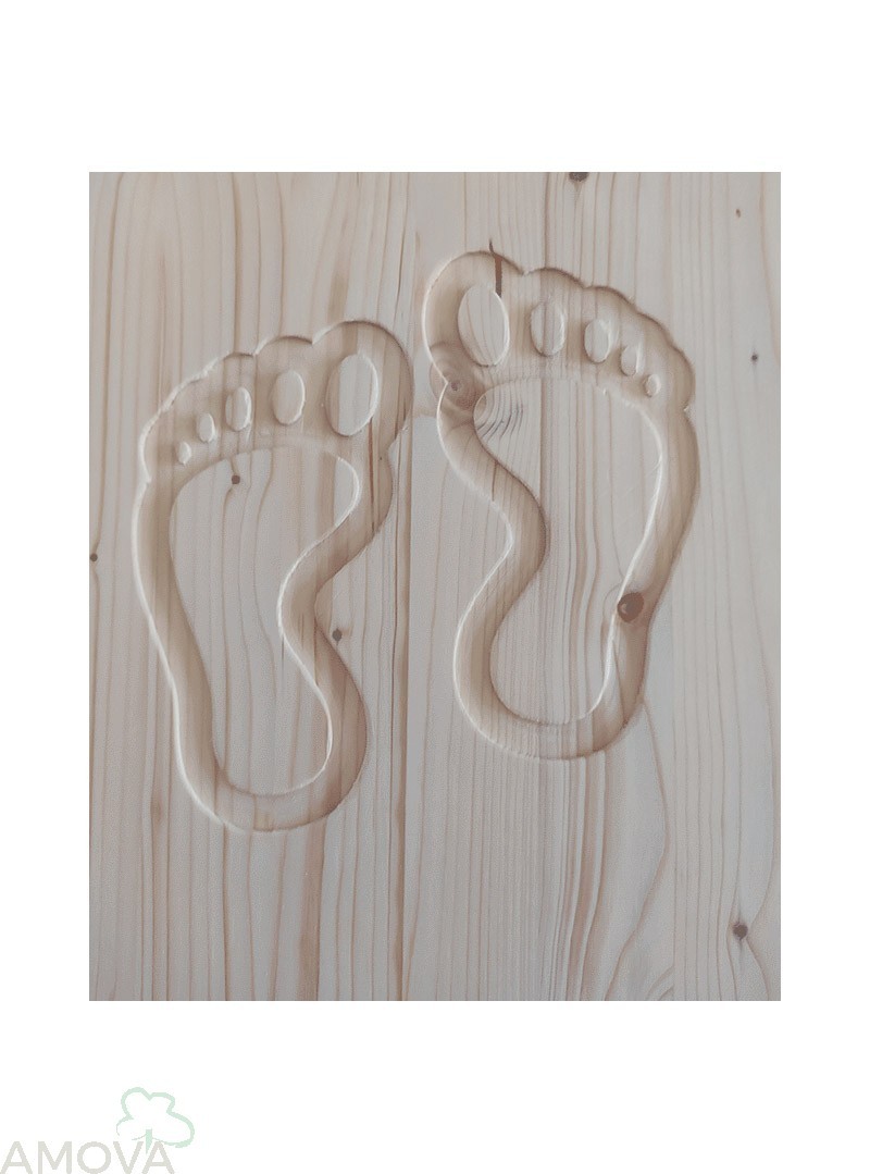 Bonito zapatero con diseño juvenil con unas huellas de pies en el frontal del zapatero.
